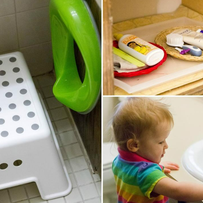 - Туалетный принадлежности (расчёска, зубная щётка и полотенце) в досягаемости ребёнка. Вы можете использовать отдельную корзиночку для туалетных принадлежностей малыша.