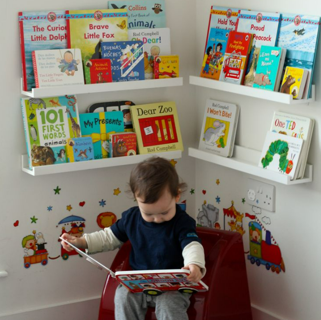 - Низкая полочка с книгами. В комнате ребёнка должны находится только книги, соответствующие его возрасту. Не ставьте слишком много книг, лучше меняйте их время от времени. Книги должны быть красиво расставлены.